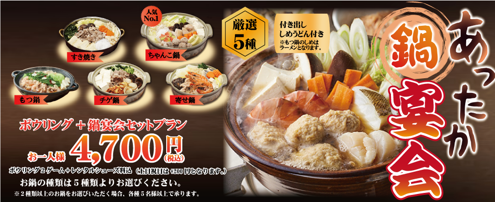 ※2種類以上のお鍋をご注文の場合は各種5名様で承ります。